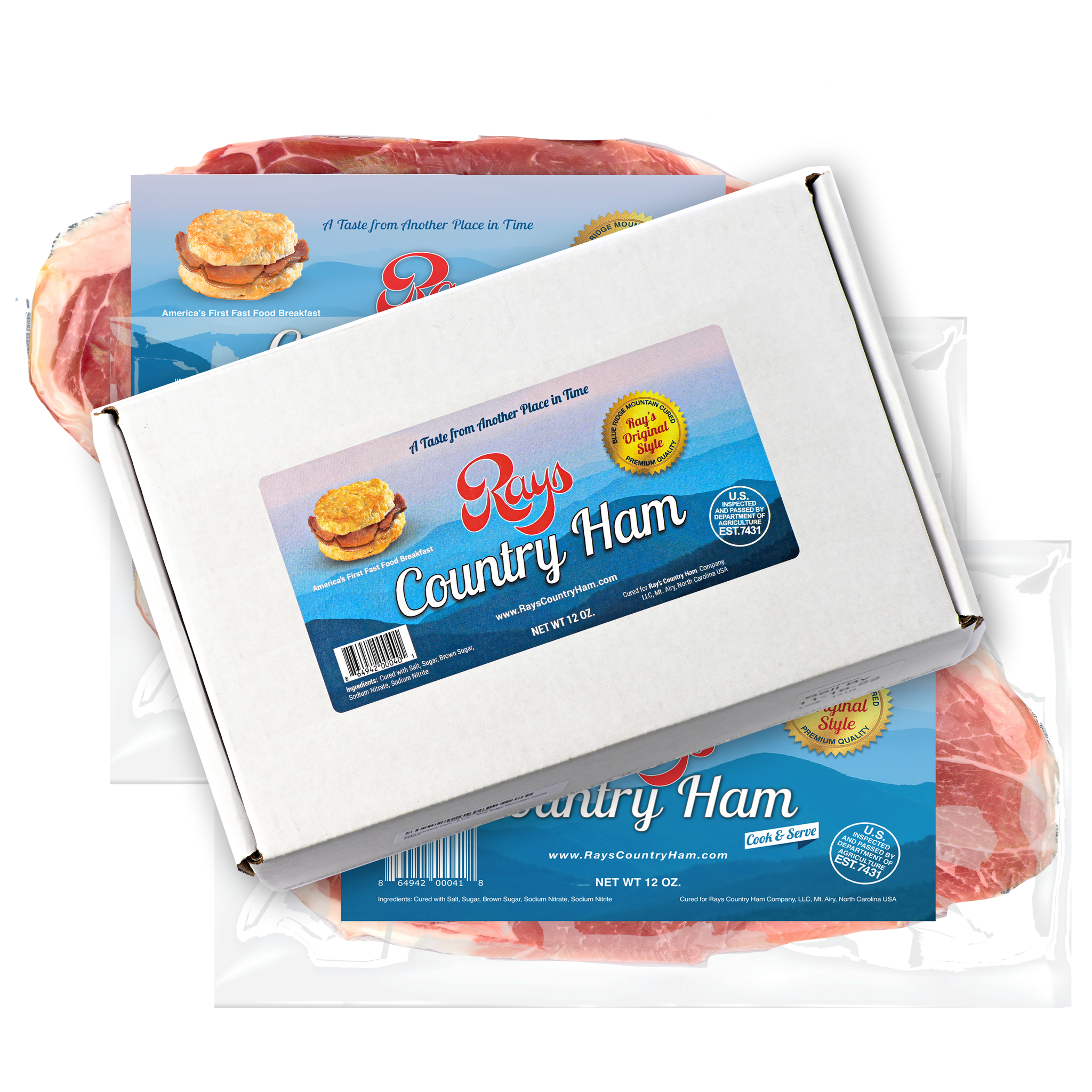 Ray's Country Ham is more than just ham—it’s heritage. Crafted with century-old curing methods, our salt-cured, air-dried ham reflects traditions from North Carolina’s Blue Ridge Mountains. Every slice delivers the deep, savory richness of authentic country ham. For over 75 years, Ray's has been a Southern favorite, offering an unmistakable flavor that stands the test of time. Taste true Blue Ridge craftsmanship in every bite.