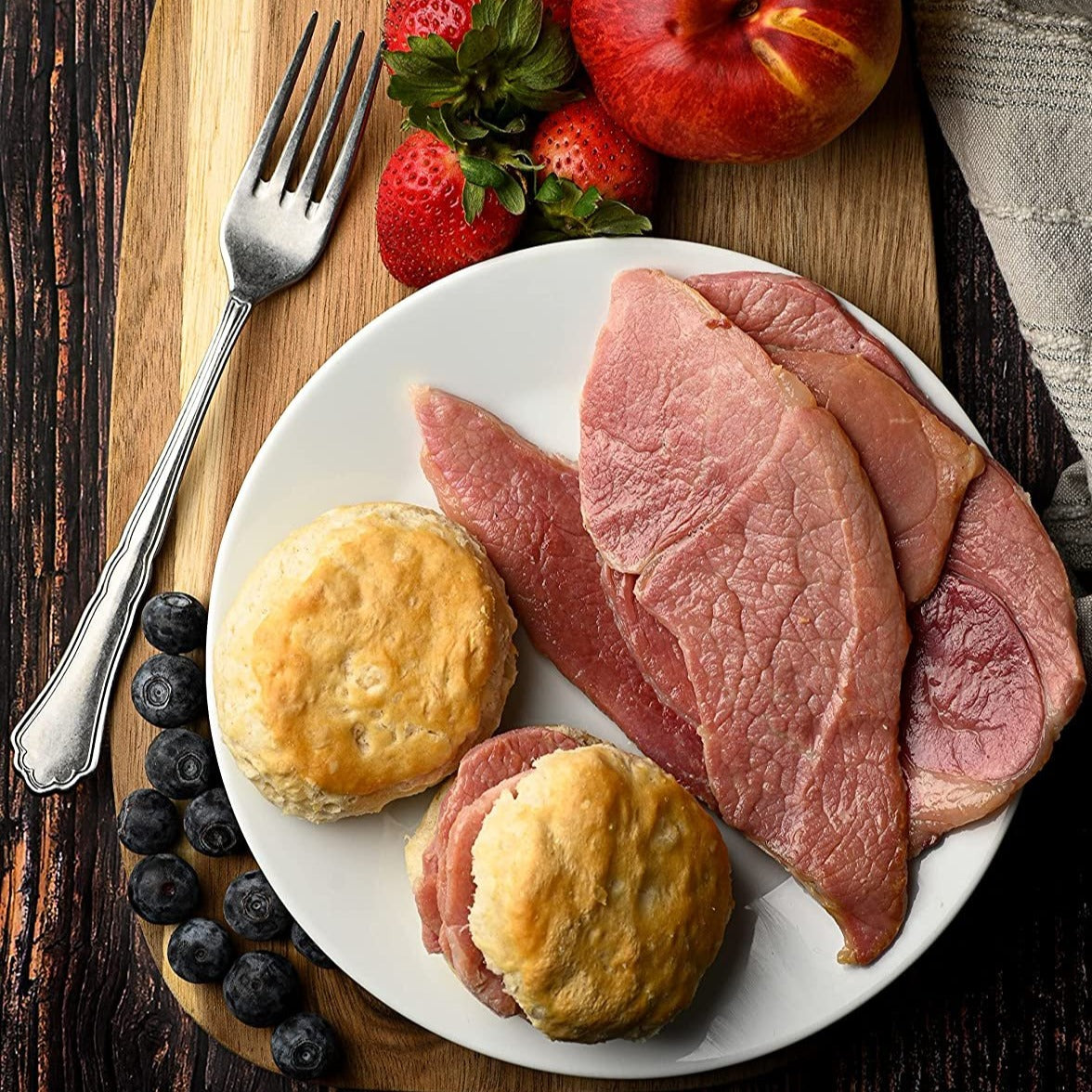 While many products labeled “country ham” are unexpectedly mild, Ray’s preserves the deep, savory taste that made Ray Goad’s legendary biscuits famous. Hand-rubbed with a classic blend of salt, sugar, and brown sugar, these Blue Ridge Mountain–cured slices offer a salt-forward, robust flavor reminiscent of bygone Southern diners. If you’re after a truly authentic ham experience—rich, satisfying, and unmistakably Appalachian—this is the taste you’ve been craving.